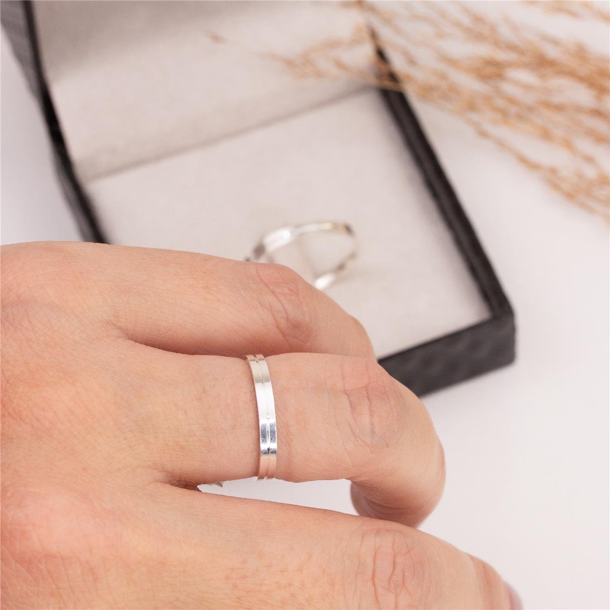 Aliança prata 925 modelo quadrado e lisa com no centro faixa lisaLargura: 3,0mm