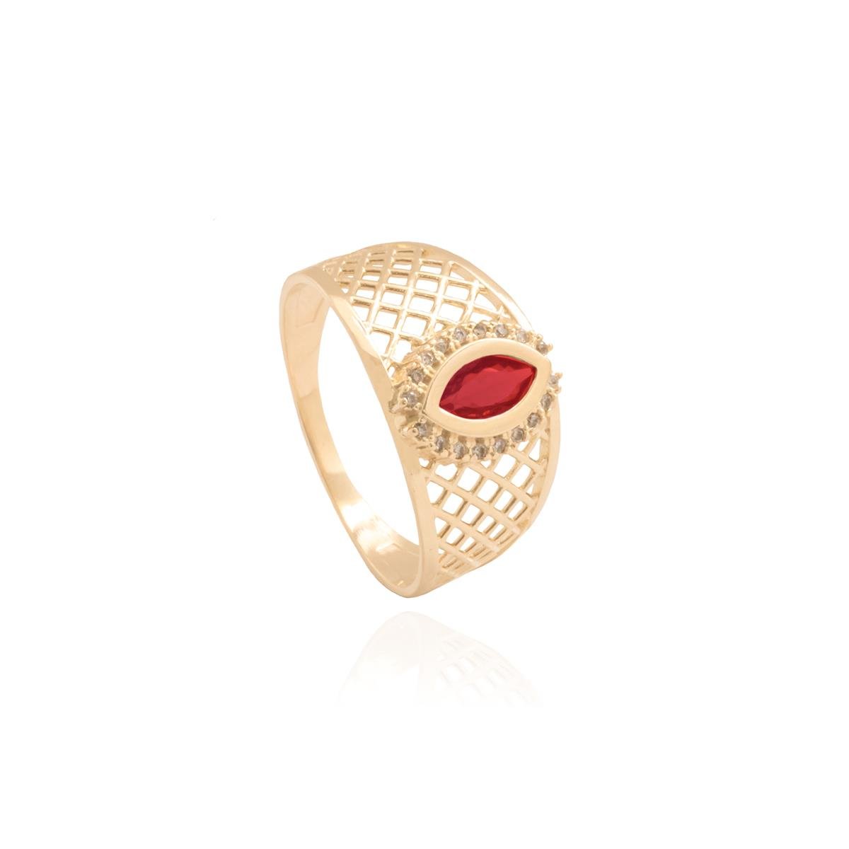 ANEL FOLHEADO A OURO COM VAZADOS E NAVETE DE ZIRCÔNIA