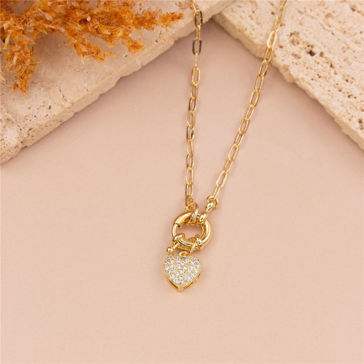 Colar folheado a ouro 18k modelo com fio corrente cartier com fecho boia todo liso na frente e com pingente de coração (1,0cm de altura e largura) todo de mini zircônias cristais dentro do fechoCordão com 50cm sem fio extensor