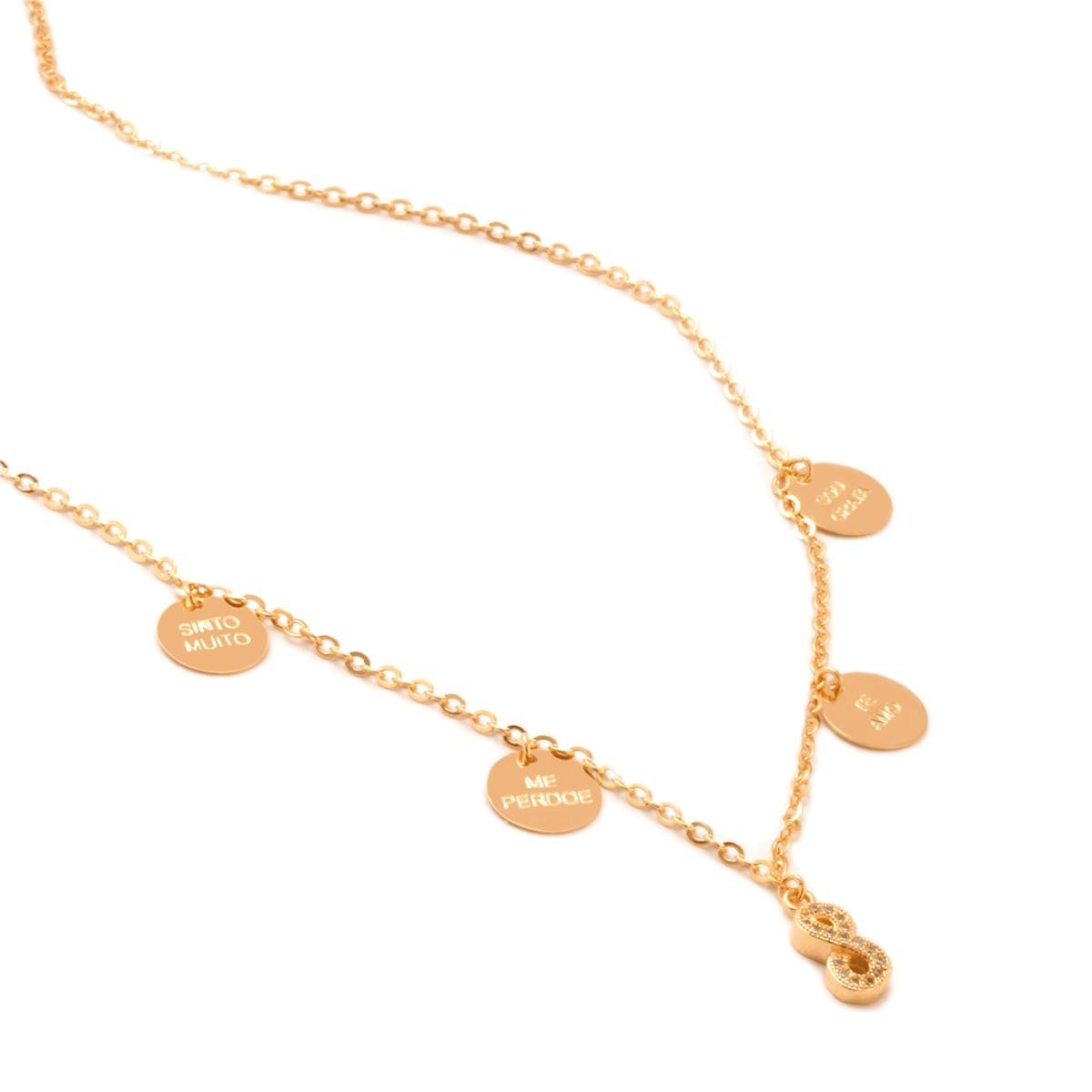 COLAR FOLHEADO A OURO INFINITO DE ZIRCÔNIA COM MEDALHAS : 07.003451-40 Facebook X Pinterest WhatsApp : R$ 99,99 : R$ 94,99 UN Pix (5% ) R$ 94,99 UN Boleto Bancário (5% ) R$ 99,99 UN Cartão de Crédito 1x R$ 99,99 - R$ 94,99 UN Pix (5% ) : - + : OK × : 1x R$ 99,99 : R$ 99,99 × : Colar folheado a ouro 18k modelo fio com simbolo de infinito todo de zircônias e 4 medalhas redondas lisas com dizeres Sinto Muito, Me Perdoe, Te Amo e Sou GrataCordão: 40cm + 4cm de fio extensorInfinito: 12mMedalha:11mm cada