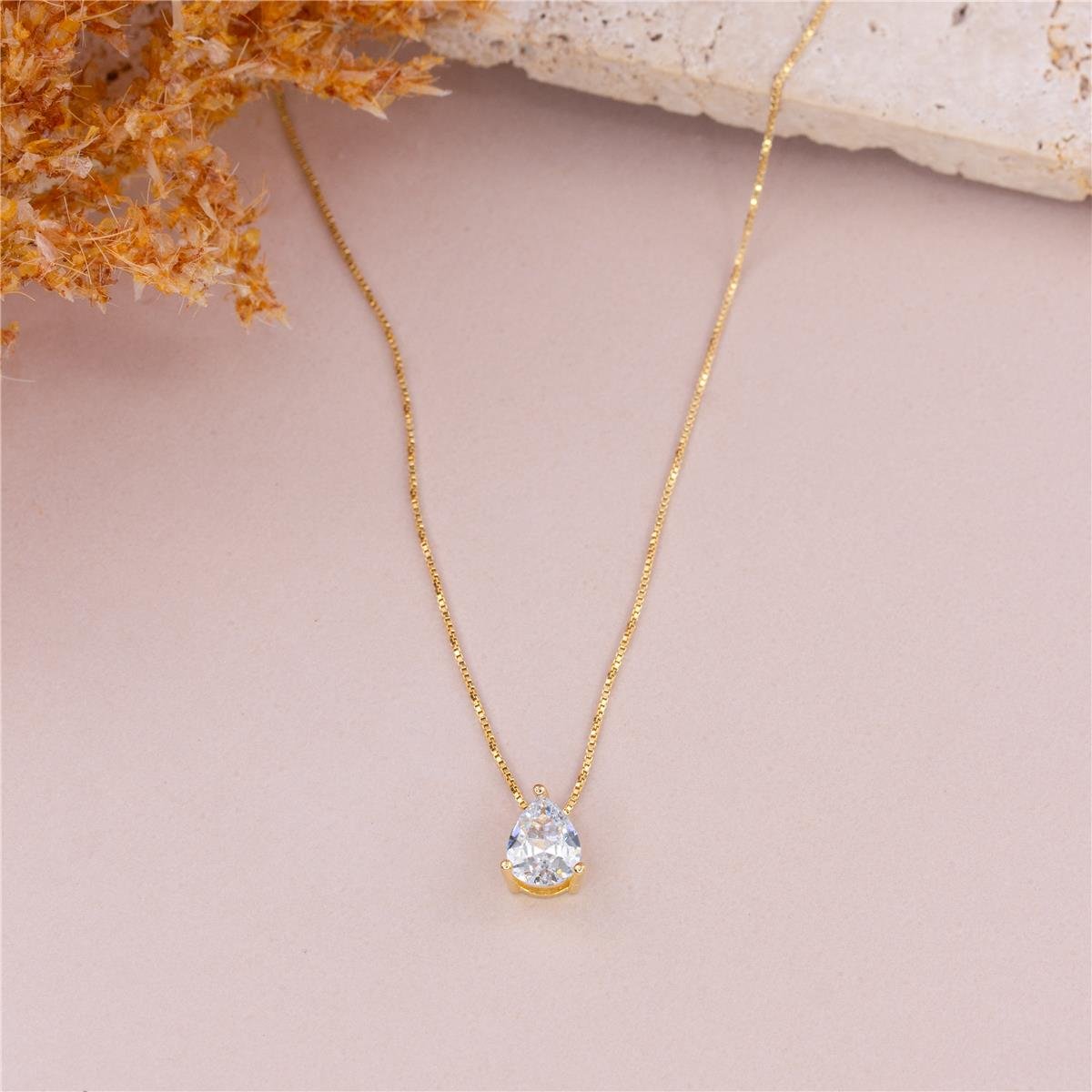 Colar folheado a ouro 18k modelo com fio veneziano fino com zircônias média em formato de gota (0,6mm de largura e 0,9mm de altura)Cordão com 40cm e o fio extensor de 6cm podendo chegar até 46cm