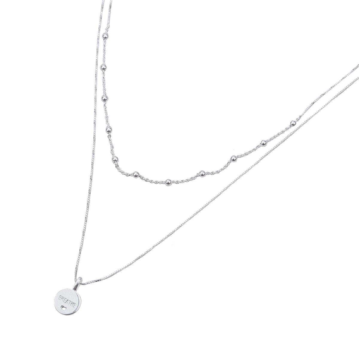 Colar prata modelo 2 fios sendo um com metade veneziano e metade de elos com bolinhas lisas e o outro fui maior veneziano com medalha lisa redonda pequena com palavra Breathe e mini coração vazadoColar menor: 40cm