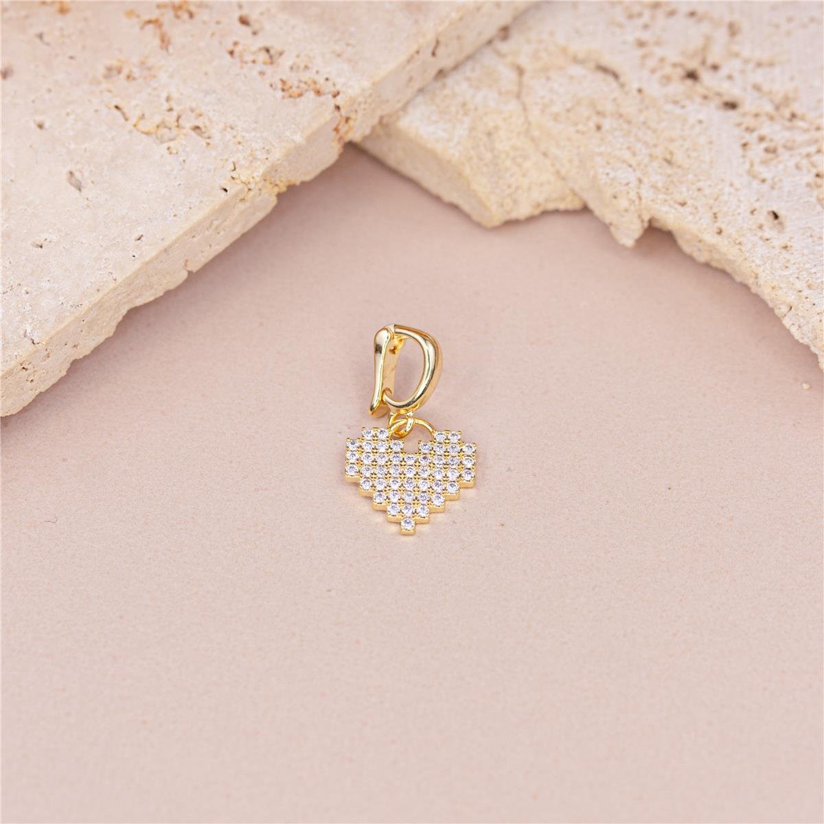PINGENTE FOLHEADO A OURO CORAÇÃO DE ZIRCÔNIAS E FECHO CLIQUE