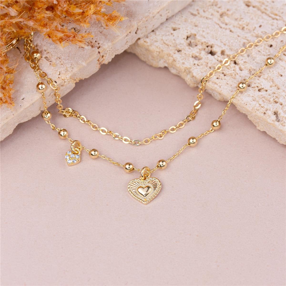 Pulseira folheado a ouro 18k modelo infantil de dois fios sendo um fio de mini elos e o outro fio de mini elos mas todo de mini bolinhas lisas com pendurado um mini coração todo de zircônias e o outro pequeno todo liso e trabalhadoPulseira com 15cm e com auxilio do fio extensor de 4cm podendo chegar até 19cm