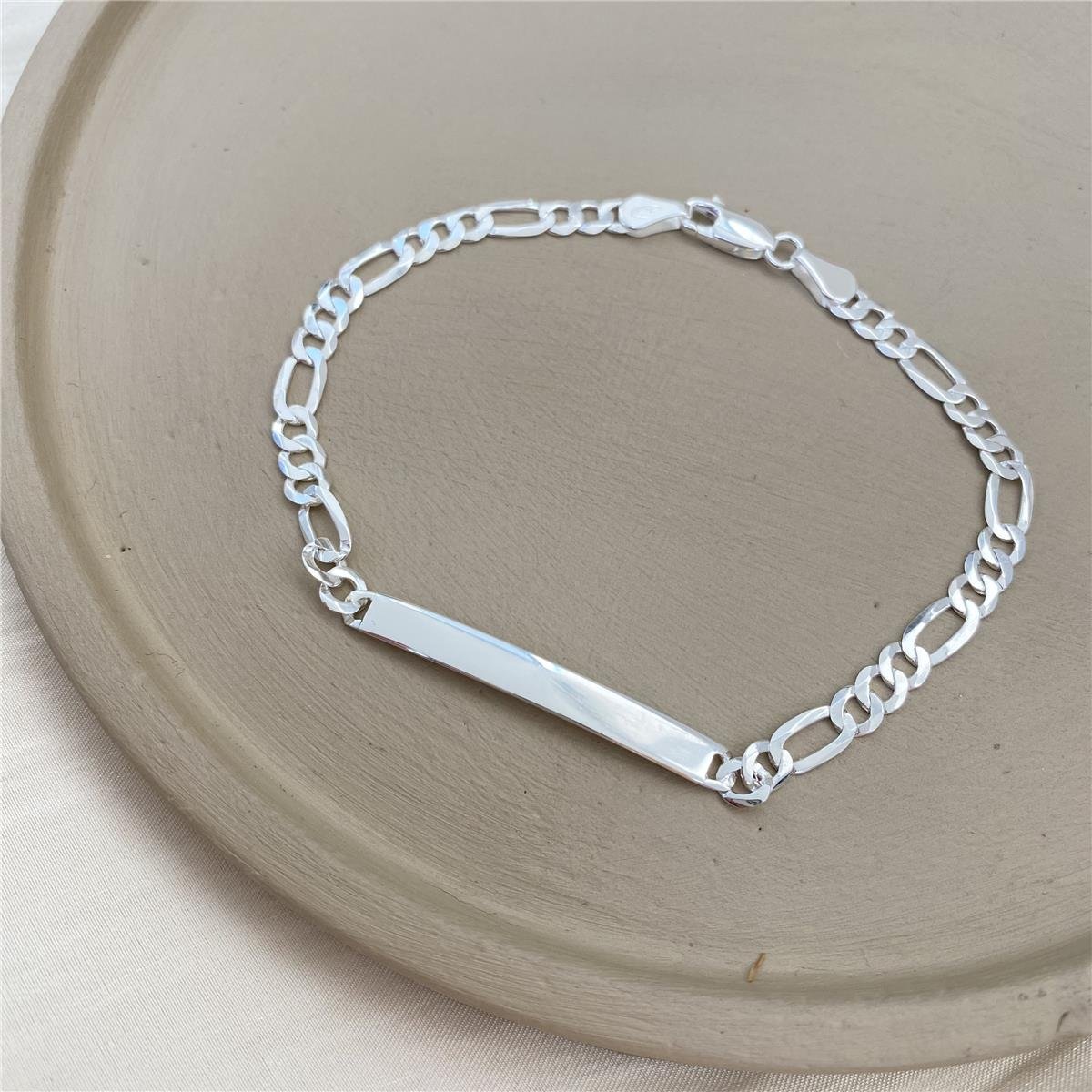 Pulseira prata modelo fio corrente fina com elos 3x1 e no centro chapa grande e lisaPulseira: 21cm sem fio extensor